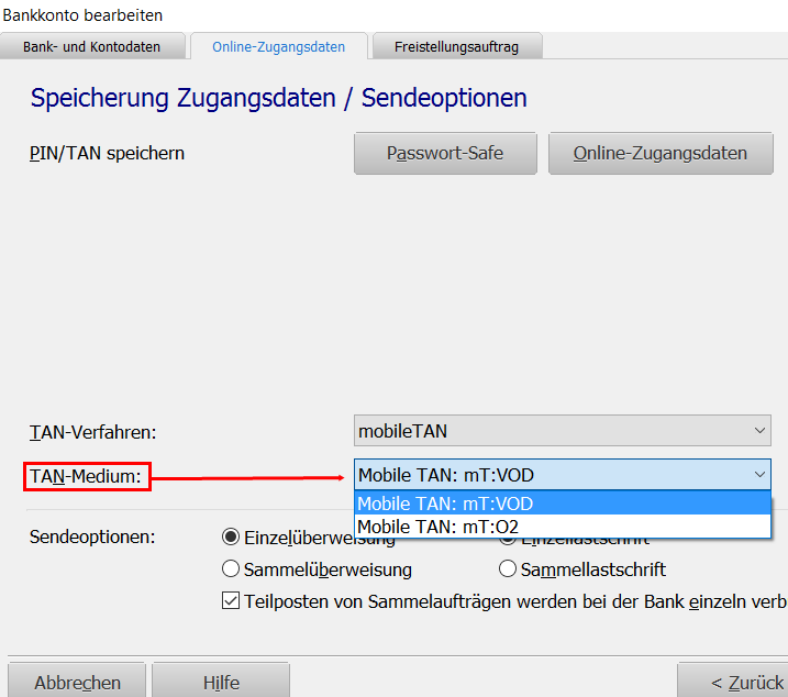 Sobald ich die PIN nicht im Passwort-Safe hinterlege, erhalte ich beim Überweisungsvorgang einen Dialog, in dem ich die Handynummer wählen kann.