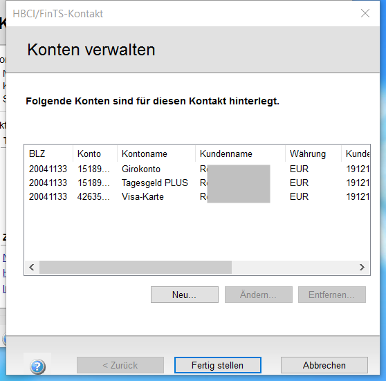versuche: Kontoübersicht --> Klick mit rechter Maustaste aufs Konto --> Bearbeiten --> Zugangsart ändern. Dann das Konto in der HBCI-Kontenübersicht zuordnen. Gruß Reinhard