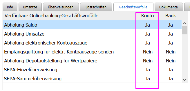 Unter Kontoübersicht --> Geschäftsvorfälle habe ich beim fraglichen Konto zu SEPA Überweisungen tatsächlich ein NEIN stehen