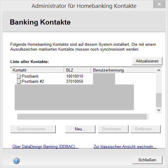 Unter Systemsteuerung --> Homebankingkontakte sind alle Konten aufgeführt.