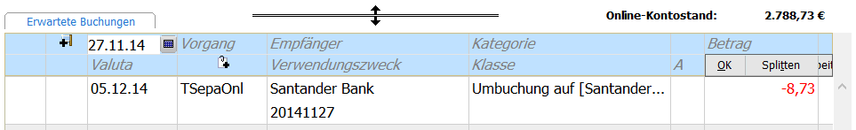 Versendete und von der Bank akzeptierte SEPA Terminbuchungen erscheinen nicht in der Kontoübersicht unter "Erwartete Buchungen". Mir fehlt somit ein Überblick über den zu erwartenden Kontostand. Die Terminbuchung erscheint nur in dem Bereich Zahlungsverkehr.