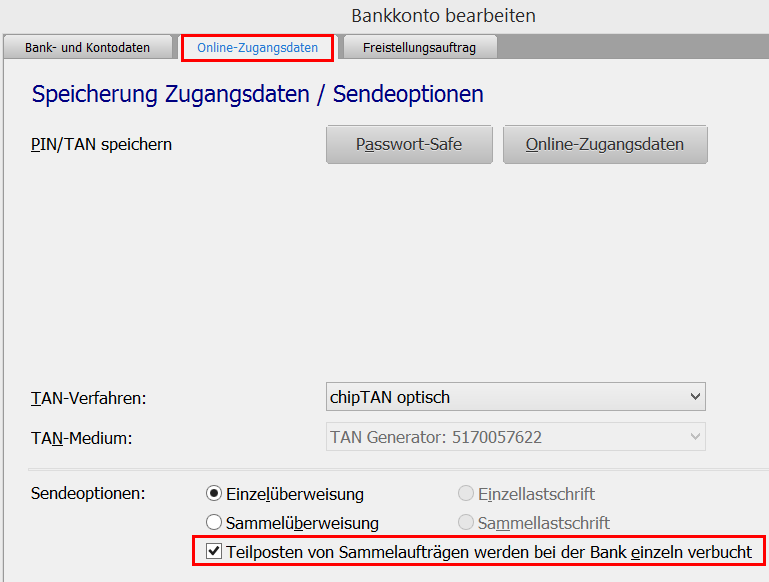 7. Widersinnig erscheint mir in dem Link https://support.lexware.de/support/p.../000000000074424, das Häkchen bei der Kontoeinstellung dort wegzumachen, wo es heißt: "Teilposten von Sammelaufträgen werden bei der Bank einzeln verbucht". - Bei mir war bislang angehakt: "Einzelüberweisung" und "Einzellastschrift" sowie das Kästchen für das Einzelverbuchen der Teilposten von Sammelaufträgen. Was ist denn nun richtig? Der Screenshot des Links zeigt das besagte Kästchen als NICHT angehakt. - Beim Anklicken der Zeile erscheint ein mir im Gesamtkontext nicht verständlicher Hinweis mit dann automatisch angehaktem Kästchen.
