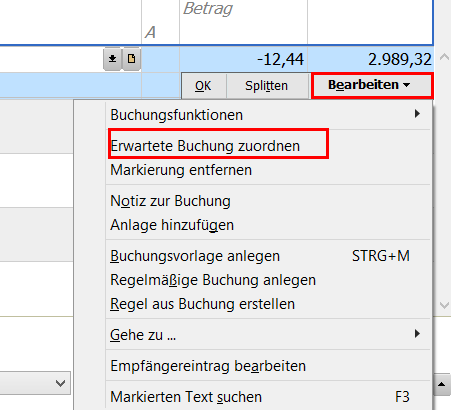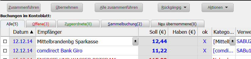 zitat:| 2. "Erwartete Buchungen" mit gelbem Dreieck, angeklickt - Buchung zuordnen - entspr. Fenster öffnet sich, zeigt die zu erwartende Buchung, aber keine Buchung für die Zuordnung. Diese befindet sich im Kontoblatt ohne Empfänger und mit dem Summenbetrag einer 7teiligen Sammelüberweisung. |
