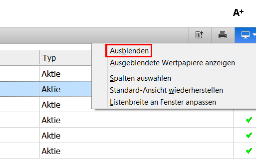 Ausblenden eines Wertpapiers in der Wertpapierliste #1