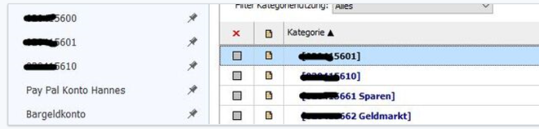 Wie zu sehen, ist das Konto da, ich kann es auch synchronisieren und alles andere damit anstellen - nur als Kategorie ist es weg. Das Konto verschwand, nachdem ich die Schlüssel re-aktiviert hatte.