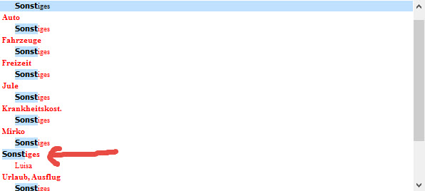 Die Unterkategorie umbenennen, wäre da wahrscheinlich einfacher, z.B. "Anderes" - kommt halt darauf an, welche Kategorien noch mit "And..." anfangen ... oder wie verhält sich die Autofil-Funktion wenn die jeweilige Unterkategorie in z.B. "Jule_Sonstiges", "Mirko_Sonstiges" (also mit dem Underline-Strich) umbenannt wird?