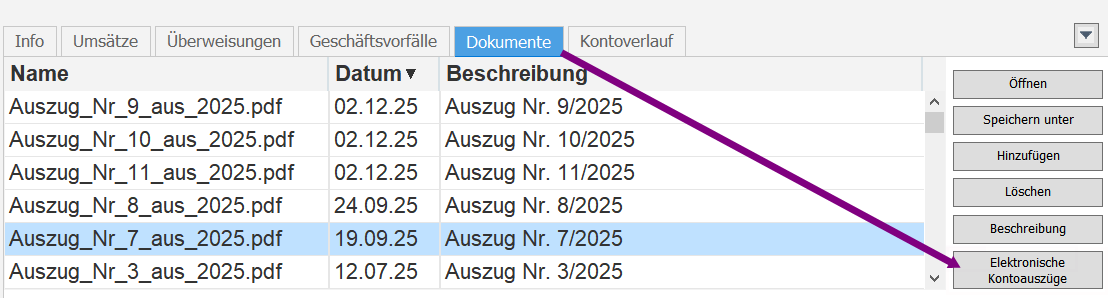 In der Kontenübersicht ist zwar der linke Reiter (Info) gefüllt, unter Dokumente bekomme ich aber nicht den Button "Elektronische Kontoauszüge" freigeschaltet. Hier ist nur "Hinzufügen" schwarz.
